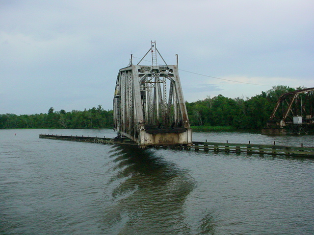 | We finally arrive in Mobile Bay. This was an extremely high commercial/industrial area. | This is a floating boat yard. Large freighters would float inside this floating chamber. Then they would let the water out in order to do any repairs on the bottom. |