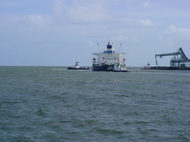 | A large freighter leaving the dock. We had to wait till the tugs pulled her out - approximately 45 minutes. | There were quite a few shrimp boats on the Gulf. |